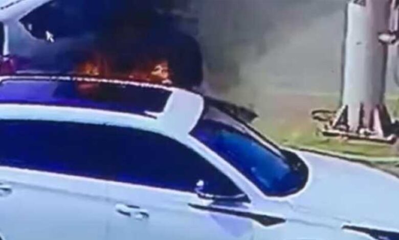 بالفيديو سكب مادة قابلة للاشتعال على السيارة وأضرم النيران بها