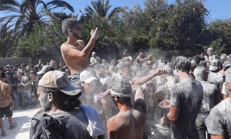 تحت شعار “طرابلس تريد الحرية” نظم في محيط معرض رشيد كرامي الدولي مهرجان ” قتال الالوان” حيث تجمع المئات وبداوا برشق بعضهم بالطحين الأبيض تعبيرا عن السلام، ثم ركضوا في شوارع المعرض قبل أن يختتموا اللقاء بالرقص .