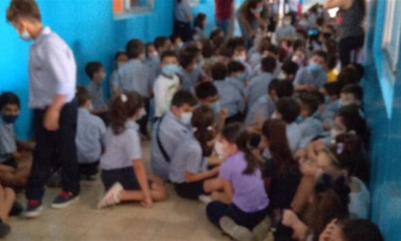 صورة مؤثرة لطلاب خائفين من الاشتباكات في احدى المدارس ..!!