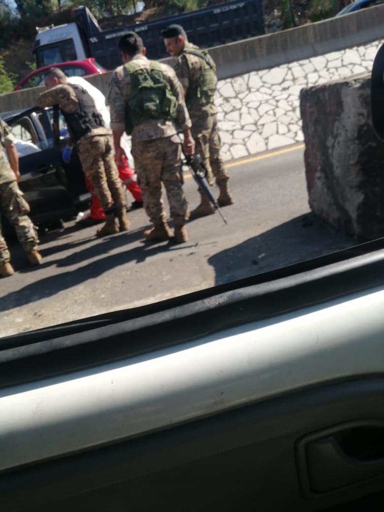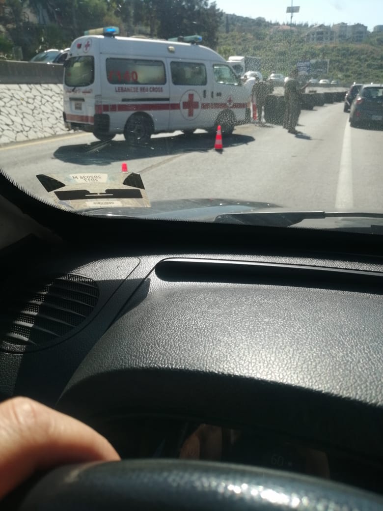 وقع حادث سير عند نقطة حاجز المدفون بإتجاه بيروت ادى الى سقوط جريح.
