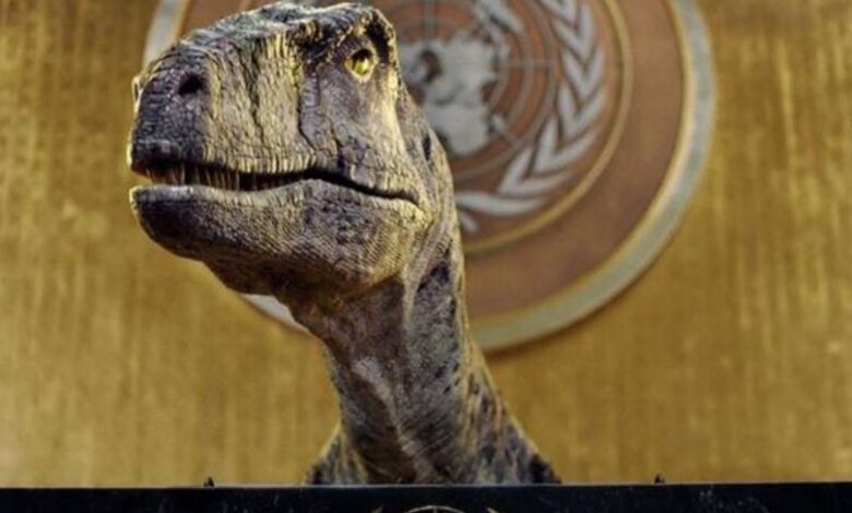 بالفيديو: ديناصور يقتحم قاعة الأمم المتحدة …!!