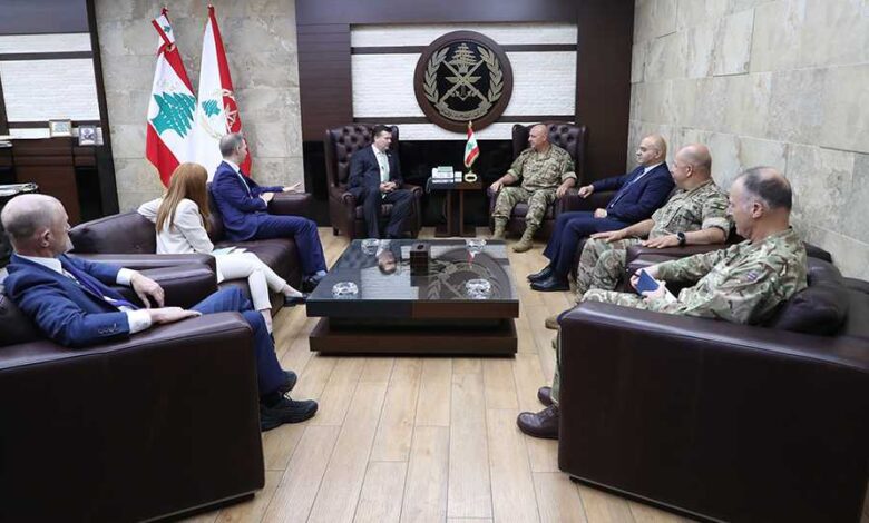 استقبل قائد الجيش العماد جوزف عون في مكتبه في اليرزة وزير القوات المسلحة البريطانية السيد James HEAPPEY بحضور السفير البريطاني في لبنان Dr. Ian COLLARD يرافقه الملحق العسكري المقدم Lee Richard SAUNDERS، وتمّ البحث في سبل التعاون بين جيشي البلدين، كما استقبل السيدة رينيه الصباغ مديرة مكتب UNODC في بيروت، وتم التداول في شؤون مختلفة، كذلك استقبل وفداً من تجمع صناعيي البقاع برئاسة السيد نقولا أبو فيصل، وتم البحث في سبل التعاون مع الجيش اللبناني.