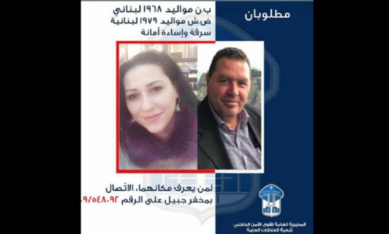 واضافت بي بلاغ: “من خلال التحقيقات والمتابعة، تبيّن أن (ب. ن.) وزوجته (ض. ش.) قد تركا منزلهما وتواريا عن الأنظار”.