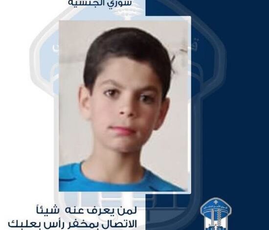 لذلك، يرجى من الذين شاهدوه أو لديهم أي معلومة عنه أو عن مكان وجوده، الاتصال بمخفر راس بعلبك في وحدة الدرك الإقليمي على الرقم: ٣١٠٠١٩-٢٨، للإدلاء بما لديهم من معلومات.